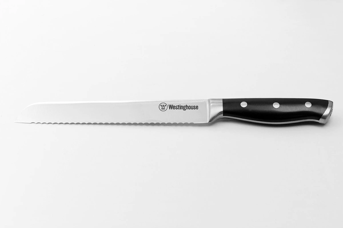 Dit Westinghouse 20cm Broodmes is scherp gekarteld en dus ideaal om broden of andere etenswaren met harde korsten te snijden. Het mes is gemaakt van kwalitatief roestvrijstaal dat een uitstekende bescherming tegen roest en slijtage biedt. De hardheid van het staal garandeert gemakkelijk en efficiënt snijden. Verder heeft het mes een ergonomisch gevormd handvat, hierdoor heeft het mes een fijne houvast en biedt het mes optimaal gebruiksgemak. Het handvat is verstevigd met klinknagels. Deze essentiële kenmerken maken dit Westinghouse 20cm broodmes een waardevolle toevoeging aan elk huishouden.